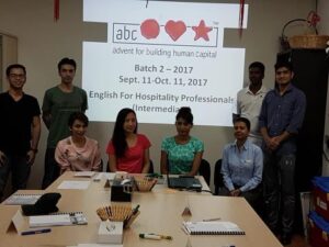 abc Foundation got established as a not-for-profit organization to help the development of young adults to a globally recognized standard, to enable them to take up employment in the hospitality industry. abc’s core initiative is to impart learning made available by trained abc tutors of a specially developed curriculum, “English for Hospitality Professionals,” to young adults having completed successful specially designed abc assessment tests.